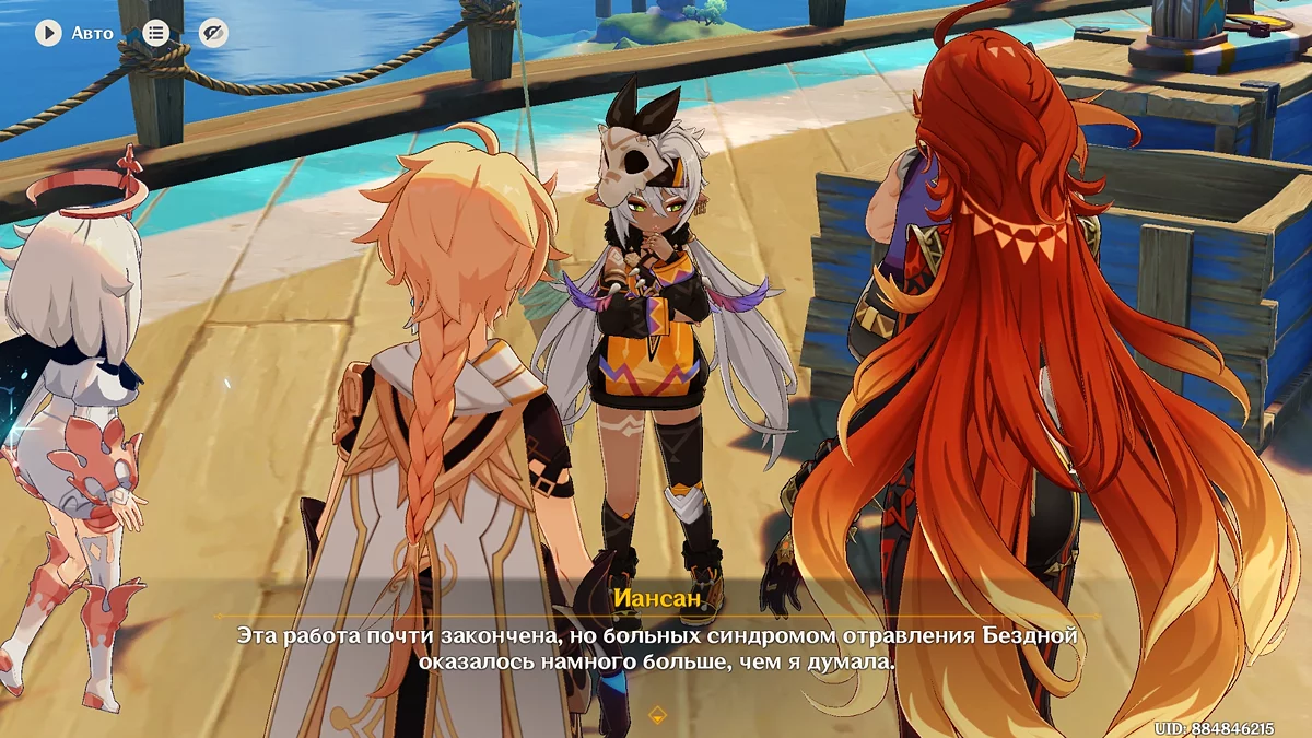 Iansan można znaleźć w samym centrum osady plemienia Wiosennych Ludzi. Będzie rozdawać ostatnie eliksiry klarowności, które otrzymała od Capitano. Eliksiry pomagają rozproszyć wpływ Otchłani na umysł.