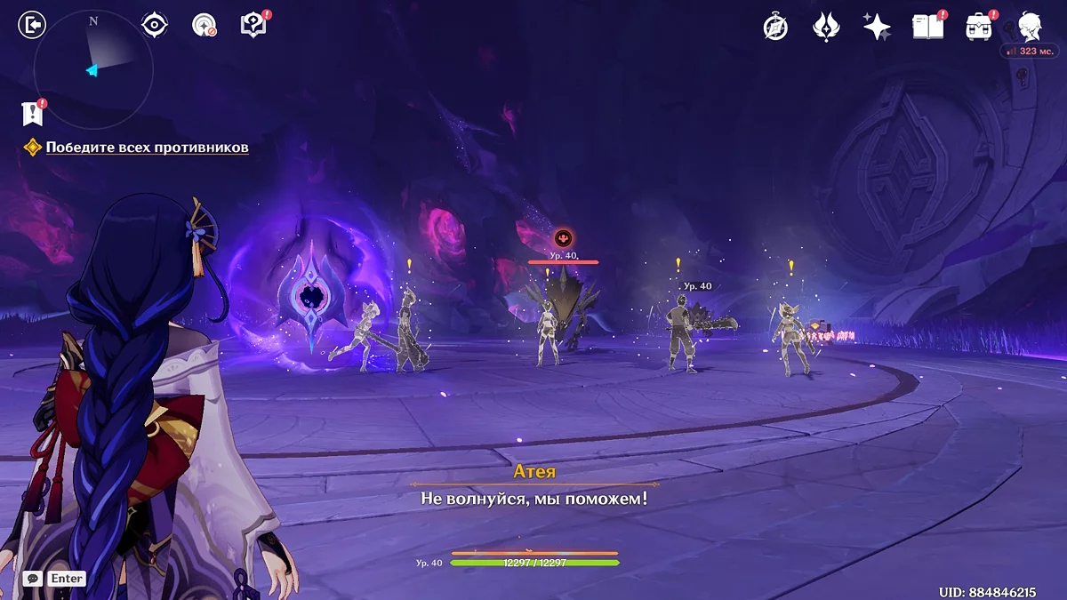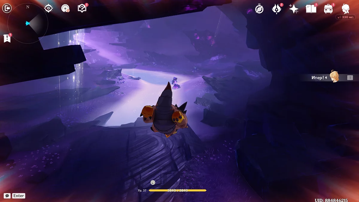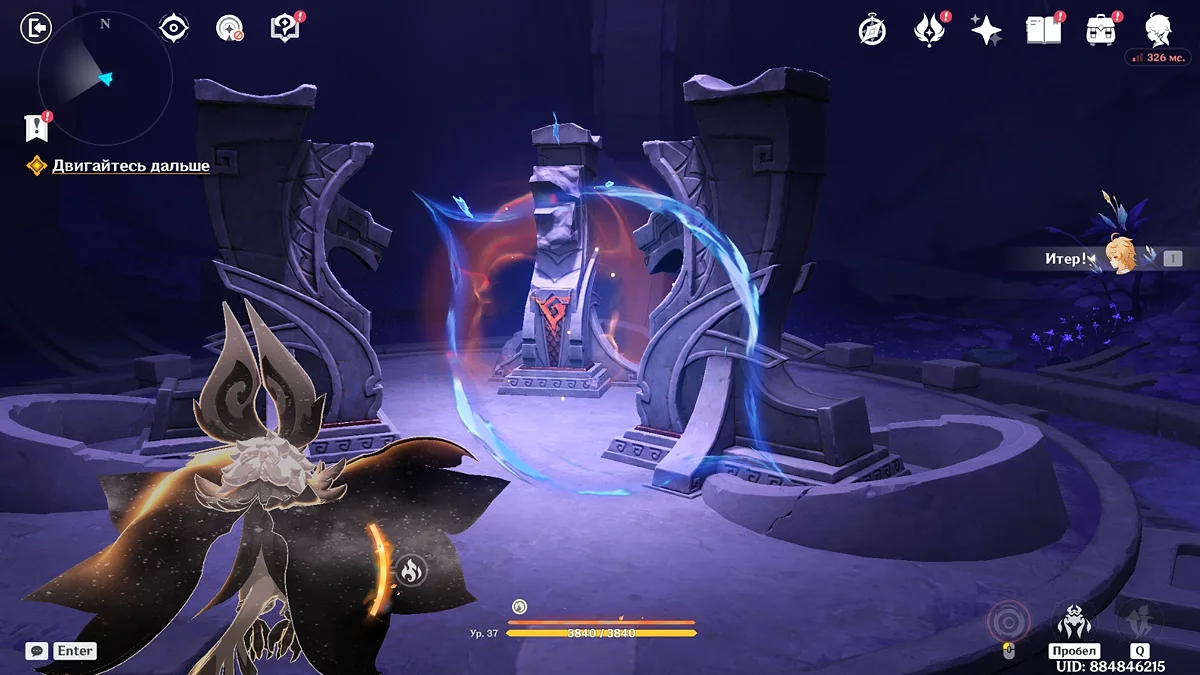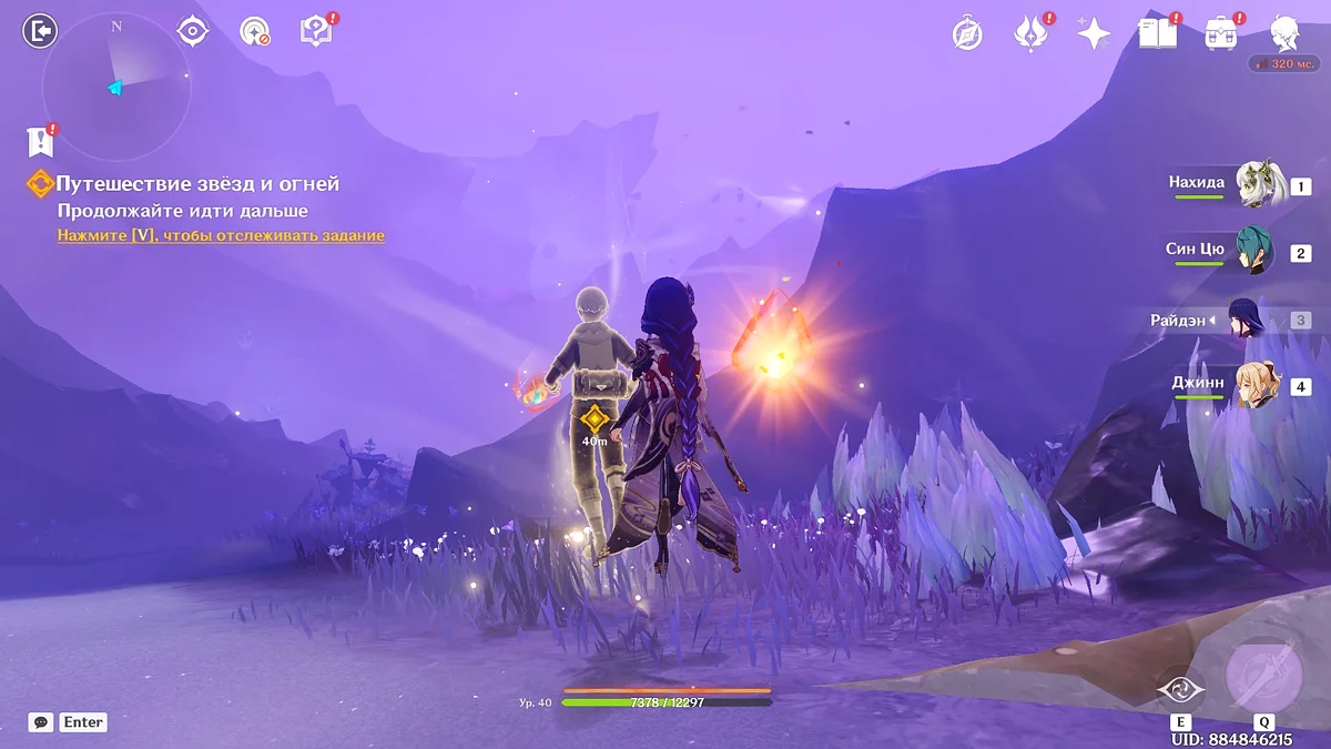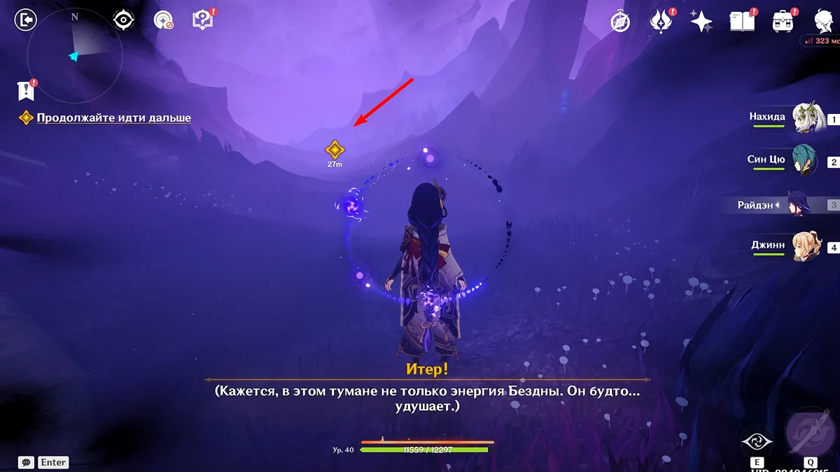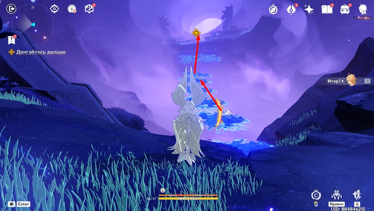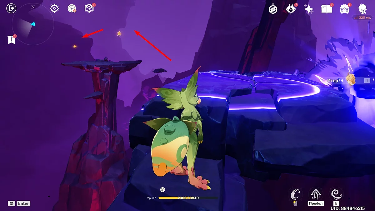 Po przejściu do przodu, aktywna postać zmieni się na Mavuikę. Idź naprzód i pokonaj dwa mimiflory. Użyj umiejętności bohaterki, aby szybciej pokonać wrogów. Idąc dalej, skocz na duchową ścieżkę (wcześniej aktywując cykl płomieni). Pokonaj Cryo Abyss Mage'a i kontynuuj. Mavuika porozmawia ze swoją siostrą Hini i ruszy dalej. Następnie akcja przełączy się na Podróżnika.