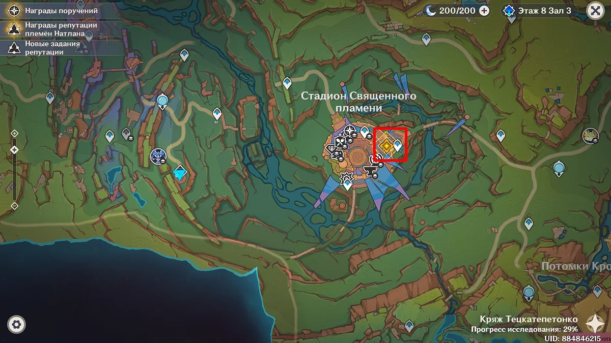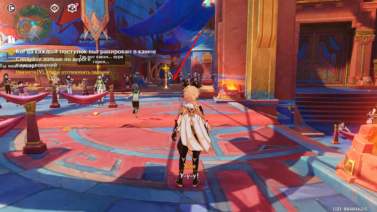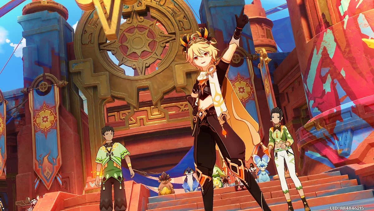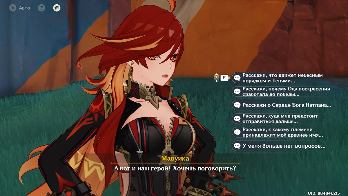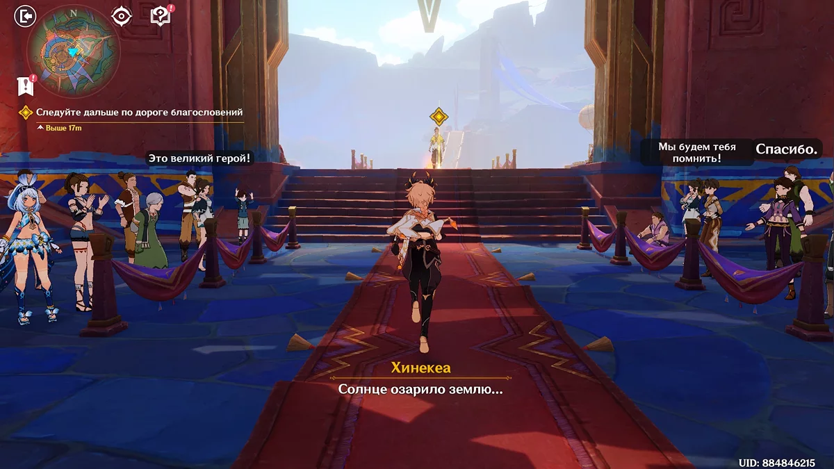 Na świętowaniu, spaceruj po stadionie, przymierzaj piórową czapkę, idź drogą błogosławieństw i rozmawiaj z miejscowymi: rób zdjęcia z niektórymi, daj autografy innym, spryskując farbą lewym przyciskiem myszy. Następnie tańcz. Podczas akcji, obserwuj symbole na ekranie i naciśnij odpowiedni klawisz, aby wykonać ruch. Porozmawiaj z zmartwioną Sitlali i dowiedz się, że przepowiednia jest niezmienna, a Mavuika jest skazana na śmierć. Aby powstrzymać Pyro Archona, udaj się do Ochkanatlan.