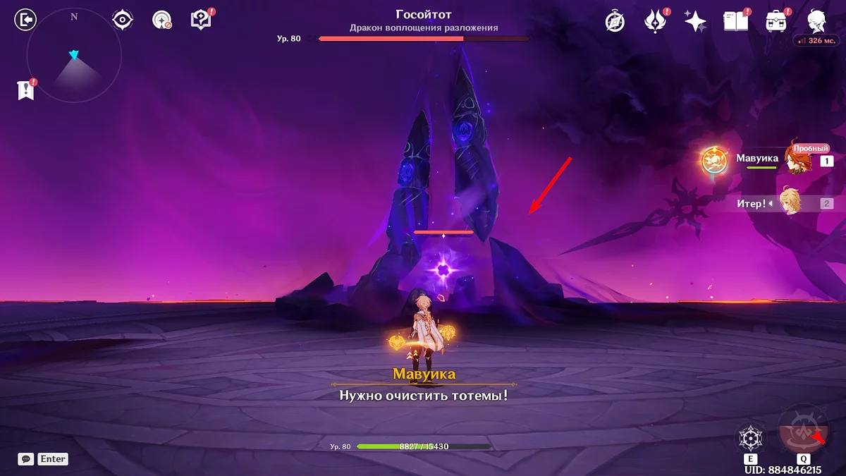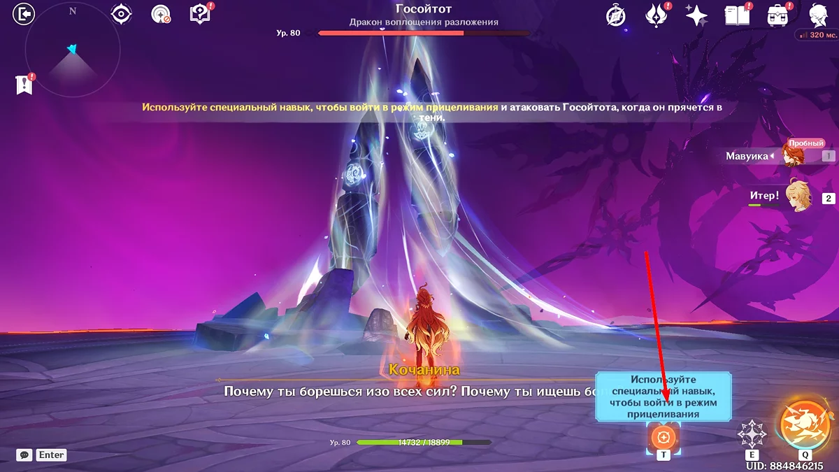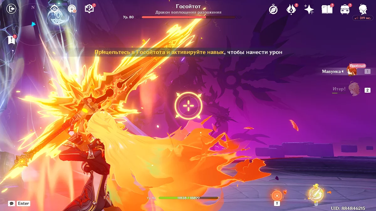 Wytrzymując do pewnej fazy, akcja wróci do Mavuiki. Przejdź przez mosty w kierunku wieży. Następnie wejdź po schodach i spotkaj Podróżnika. Weź broń, która pozwoli ci pokonać Gosoytota, a następnie kontynuuj walkę ponownie, ale teraz z główną postacią i Pyro Archonem do swojej dyspozycji.