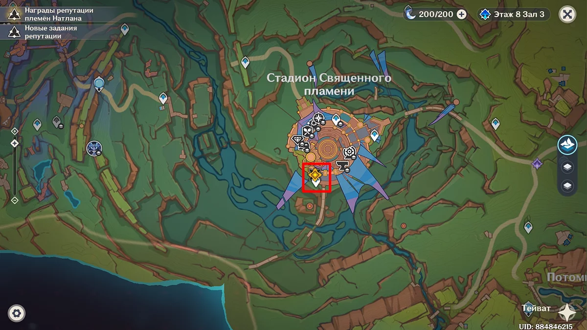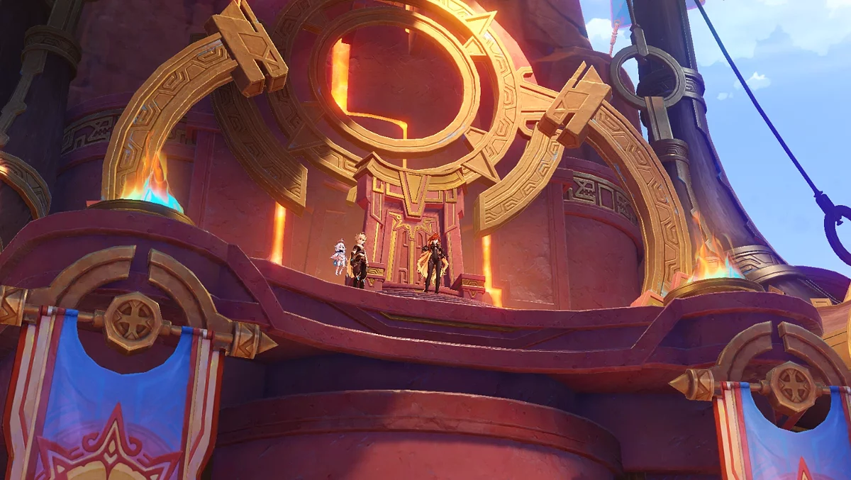 Wróć do Stadionu Świętego Płomienia i posłuchaj opowieści o sobie, którą bajarz zabawia lokalne dzieci. Po tym główne zadanie Natlan zostanie ukończone.