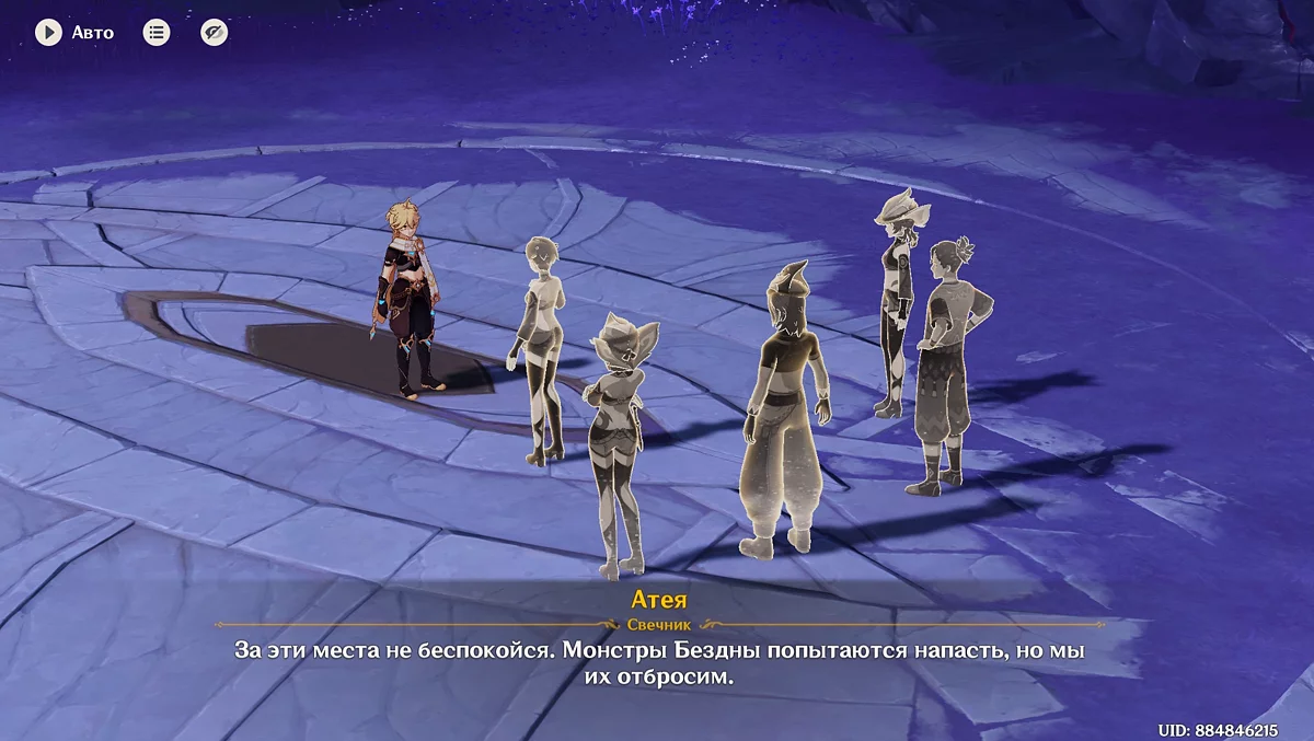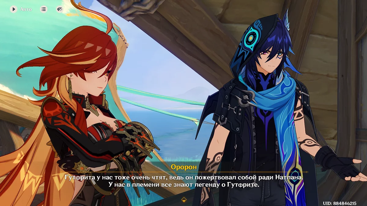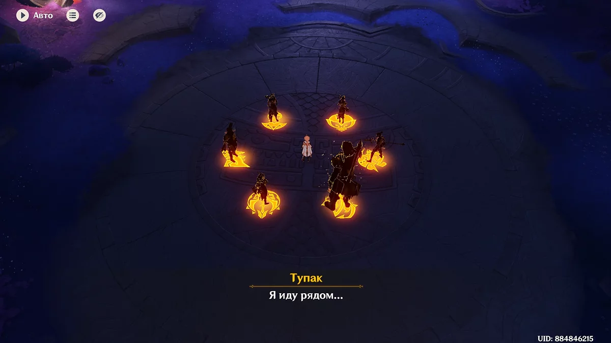 Zaintrygowany snem Podróżnika, Ororon zasugeruje przeprowadzenie specjalnego rytuału, aby zrozumieć znaczenie tej wizji. Razem z młodym mężczyzną i Mavuiką udaj się na północny zachód od plemienia Wiosennych Ludzi. Po rytuale okazuje się, że nieznany mężczyzna z Khaenri'ah, który stał obok Capitano we śnie, to wojskowy lekarz Gutfrid. Wcześniej próbował przejąć duszę Ororona, zanim Pan Nocy się obudził. Mavuika ujawni również prawdziwe imię Harbinger'a Fatui — Train, bohatera, który przez wiele lat chronił Natlan. Po rozmowie wróć do uczty tą samą drogą, a gdy wszyscy zaczną wracać do domu, zaproponuj odprowadzenie Kachiny do jej plemienia.
