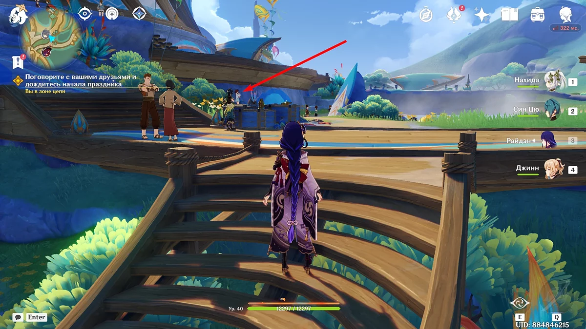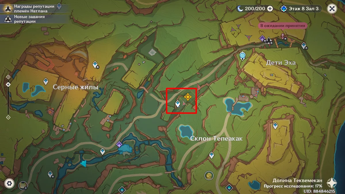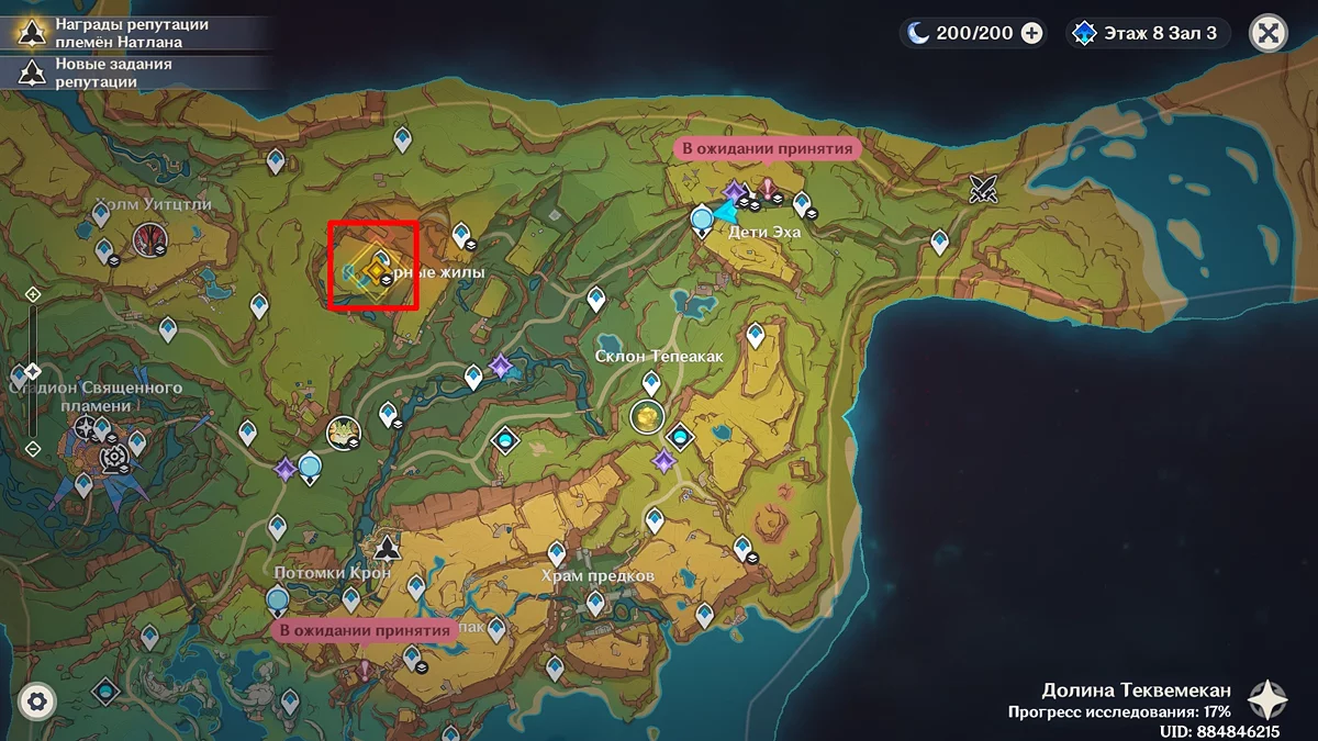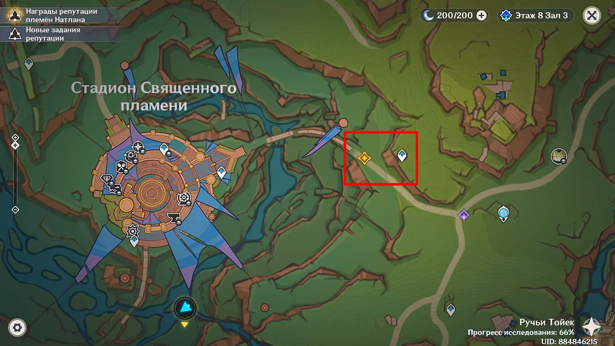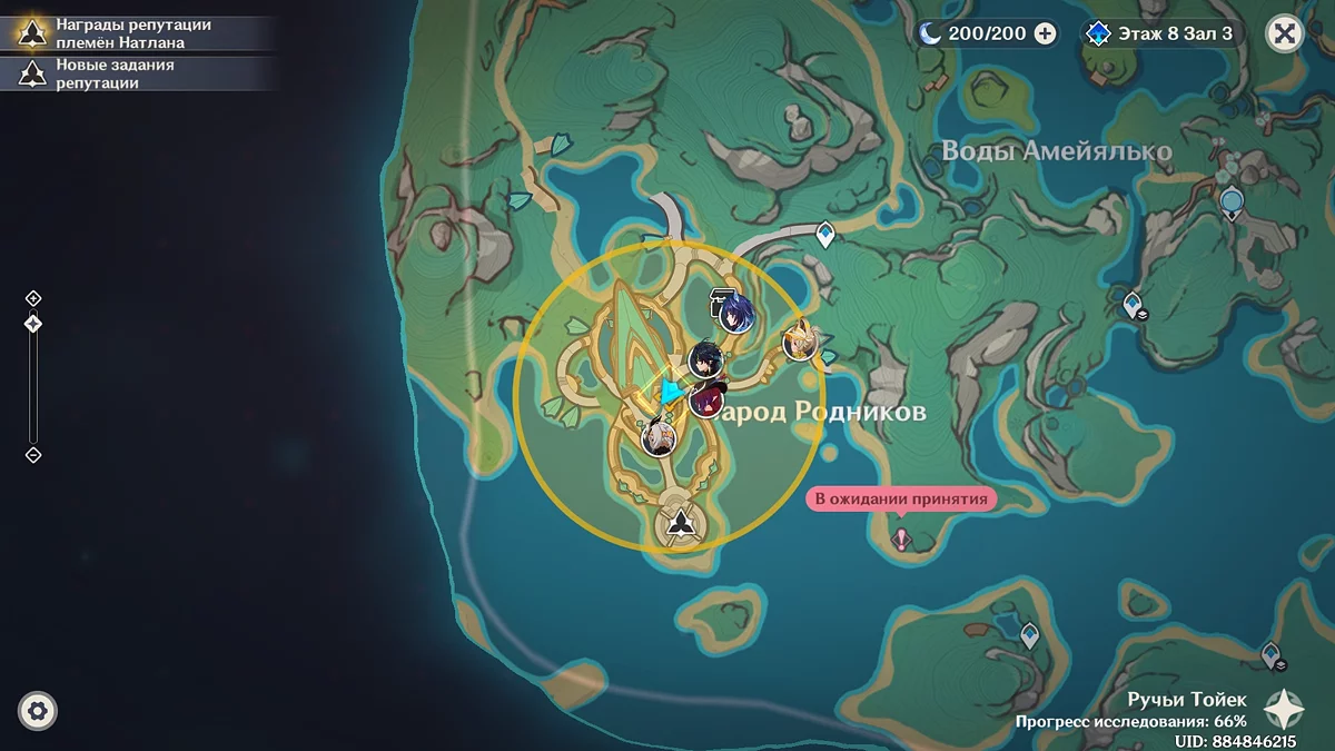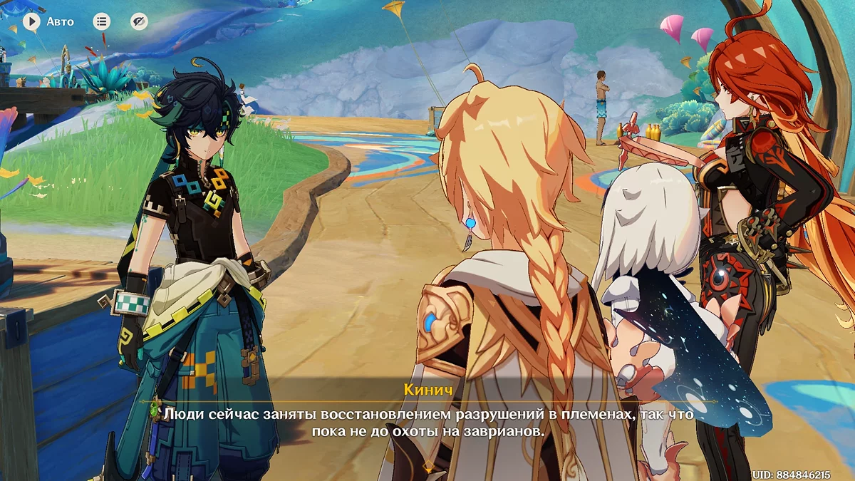 Użyj teleportu na wschód od osady Wiosennych Ludzi i biegnij do wskazanego punktu na mapie. Porozmawiaj z Kinichem i przywódczynią plemienia Aminą. Po dowiedzeniu się, że mają pewne trudności z organizacją święta, Mavuika im pomoże. Podróżnik postanawia wybrać się na spacer przed rozpoczęciem uczty.