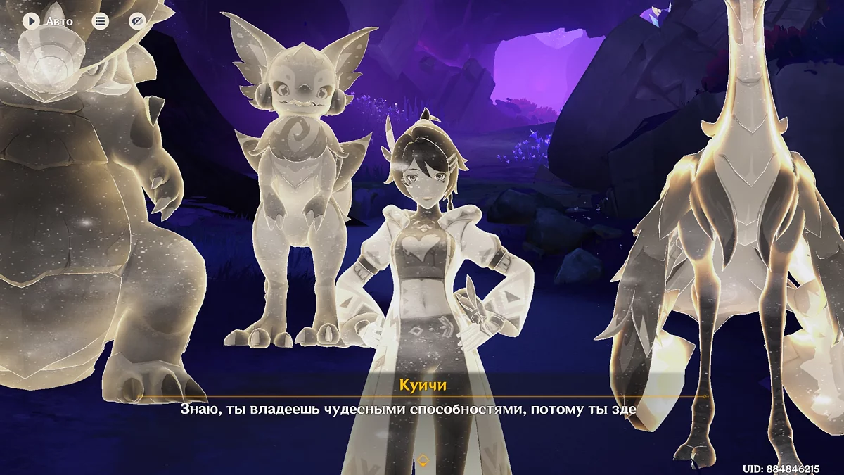 Po tym udaj się w miejsce nieco na wschód od osady Dzieci Echa. Zatrzymując się, Kachina i Podróżnik spotkają tepitzasaur Hanvi. Widząc zmartwienie zavriana, podążaj za nią. Poprowadzi cię do swojego dziecka Ayo, który opłakuje utratę swoich dziadków i jest dość zainfekowany energią Abyss. Daj mu Eliksir Jasności, aby złagodzić objawy. Następnie udaj się do warsztatu Shilonen.