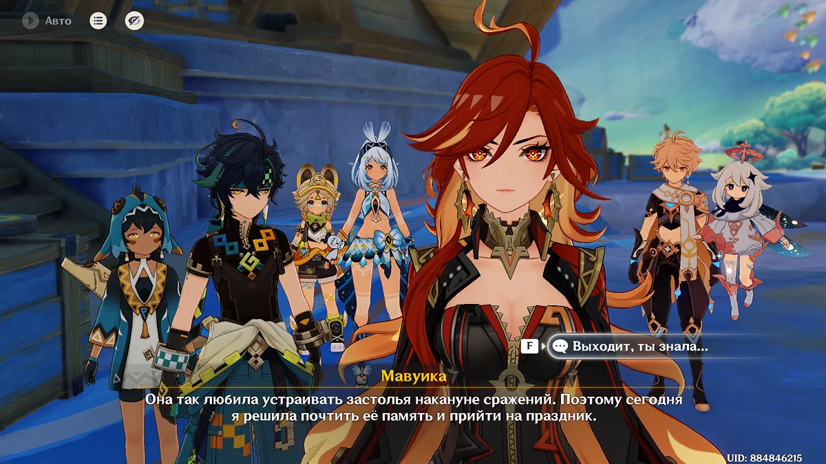 Po dziwnym śnie, Podróżnik postanawia udać się do Mavuiki, aby dowiedzieć się, jak idą przygotowania do bitwy. Ale okazuje się, że nie jest jedynym, który postanowił odwiedzić Archona Pyro — bohater spotyka Kachinę i Mualani, które sugerują, aby wziąć udział w ich uczcie, aby dobrze odpocząć przed walką z Otchłanią. Razem z Mavuiką weź udział w celebracji i porozmawiaj z przyjaciółmi.