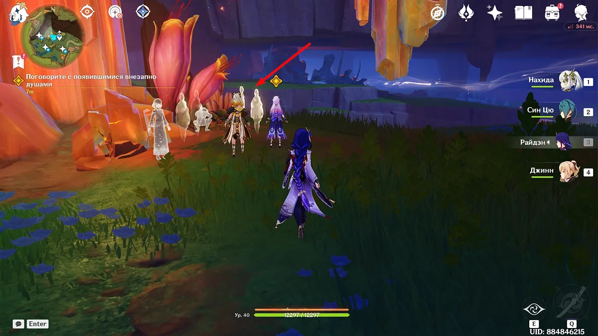 Po przybyciu w dziwne miejsce w śnie, kontynuuj ruch w stronę mglistych przejść. Idź dalej, aż zobaczysz barierę z duszami w pobliżu. Podejdź blisko do duchów, aby uruchomić scenę przerywnikową. Podróżnik zobaczy Capitano i nieznanego mężczyznę z Khaenri'ah obserwujących duchy. Po tej scenie główny bohater automatycznie znajdzie się w swoim pokoju. Omów sen z Paimon i udaj się do Mavuiki.