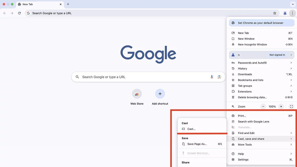 Istnieje kilka sposobów na połączenie laptopa z telewizorem: przez przycisk przesyłania z listą pobliskich urządzeń, dostępny w wielu popularnych aplikacjach, lub przez boczne menu Google Chrome z podobnym przyciskiem.