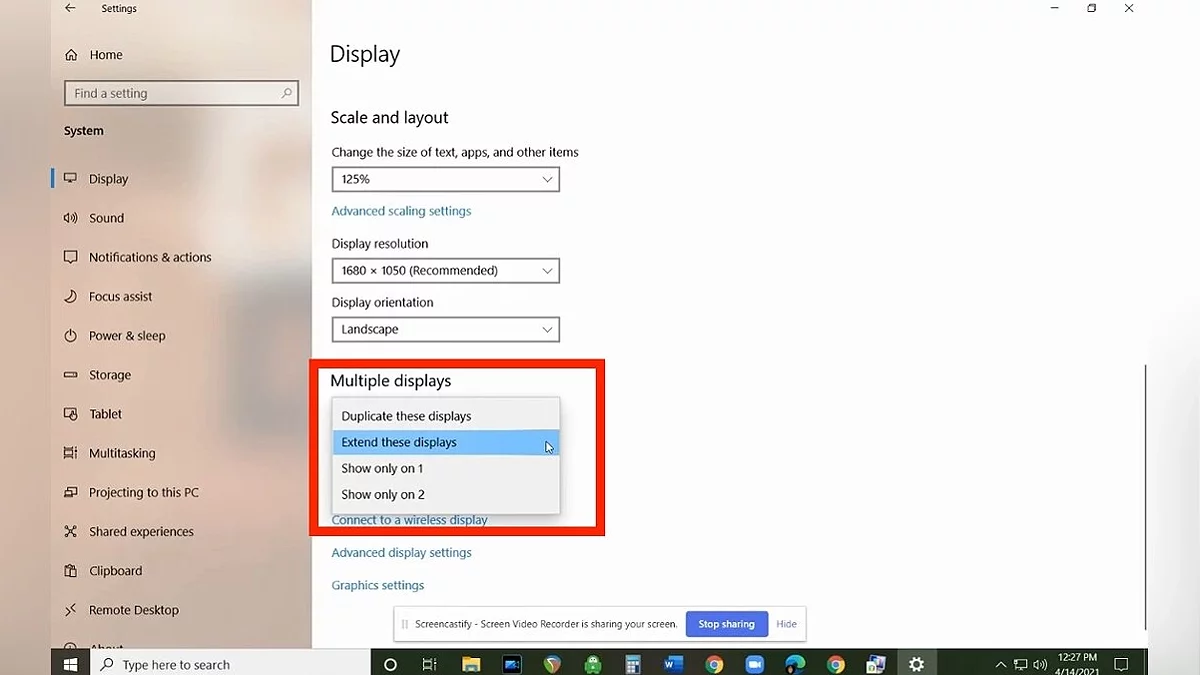 Można to również zrobić przez sekcję Wyświetlacz w ustawieniach, gdzie dostępne będą podobne tryby, a także możliwość ustawienia kolejności priorytetu monitorów.