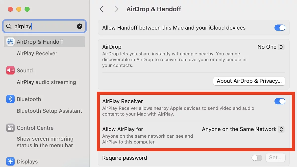 Technologia, która pozwala na przesyłanie obrazu z urządzeń Apple. Aby się połączyć, otwórz centrum sterowania w prawym górnym rogu, wybierz sekcję lustrzane odbicie ekranu i kliknij na interesujący cię telewizor. Jeśli pojawią się problemy, otwórz Ustawienia i wyszukaj AirPlay, aby sprawdzić, czy ta opcja jest włączona we wszystkich niezbędnych sekcjach wraz z wartością dostępu do połączenia z dowolnym urządzeniem w tej sieci.