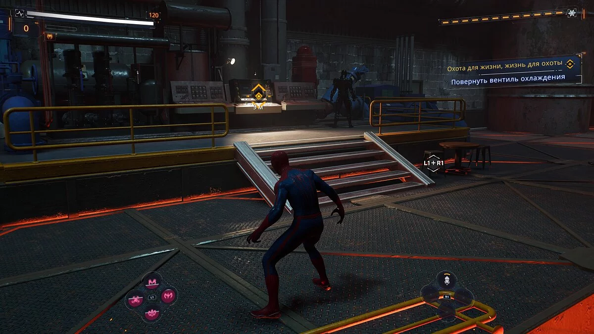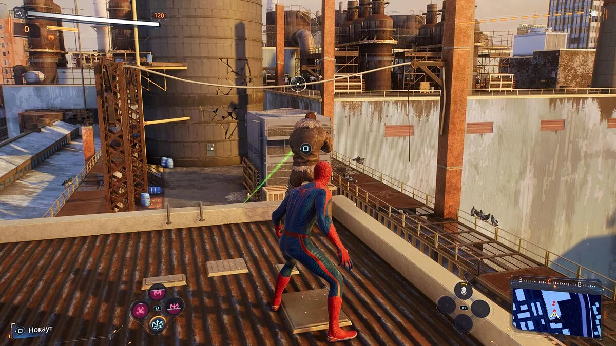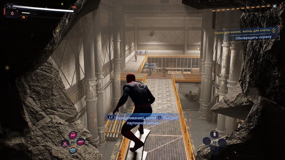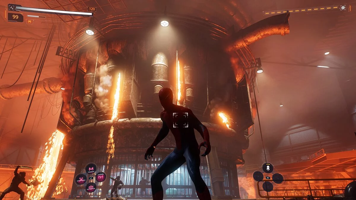 Czarna Kotka zasugerowała odwiedzenie odlewni. Udaj się tam. Napotkasz wielu łowców-snajperów. Tym razem grasz jako Peter Parker, więc nie będziesz miał niewidzialności. Jeśli chcesz działać skrycie, zacznij od dwóch przeciwników po prawej stronie swojej początkowej pozycji.