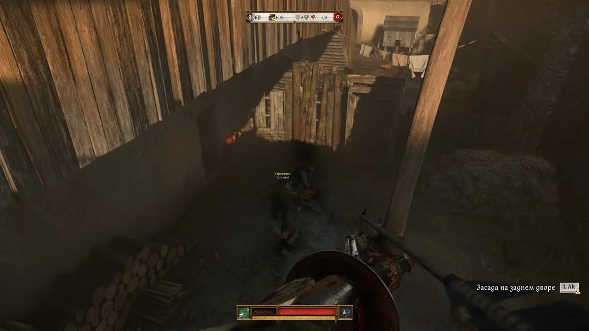 In the house, you will see Shmuel fighting with two enemies. Attack them from behind. If they switch to you, just run out of the house and wait a bit, then re-enter and continue attacking. You can also use ranged weapons.