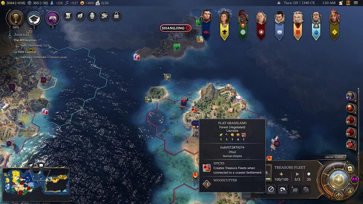 Następnie poszukaj nowych kontynentów, określanych jako "odległe ziemie." Te ziemie są potencjalnie odpowiednie do kolonii i bogate w rzadkie zasoby, takie jak złoto, przyprawy i kakao. Wyślij osadników, aby założyli miasto i zdobyli tereny z tymi egzotycznymi zasobami.