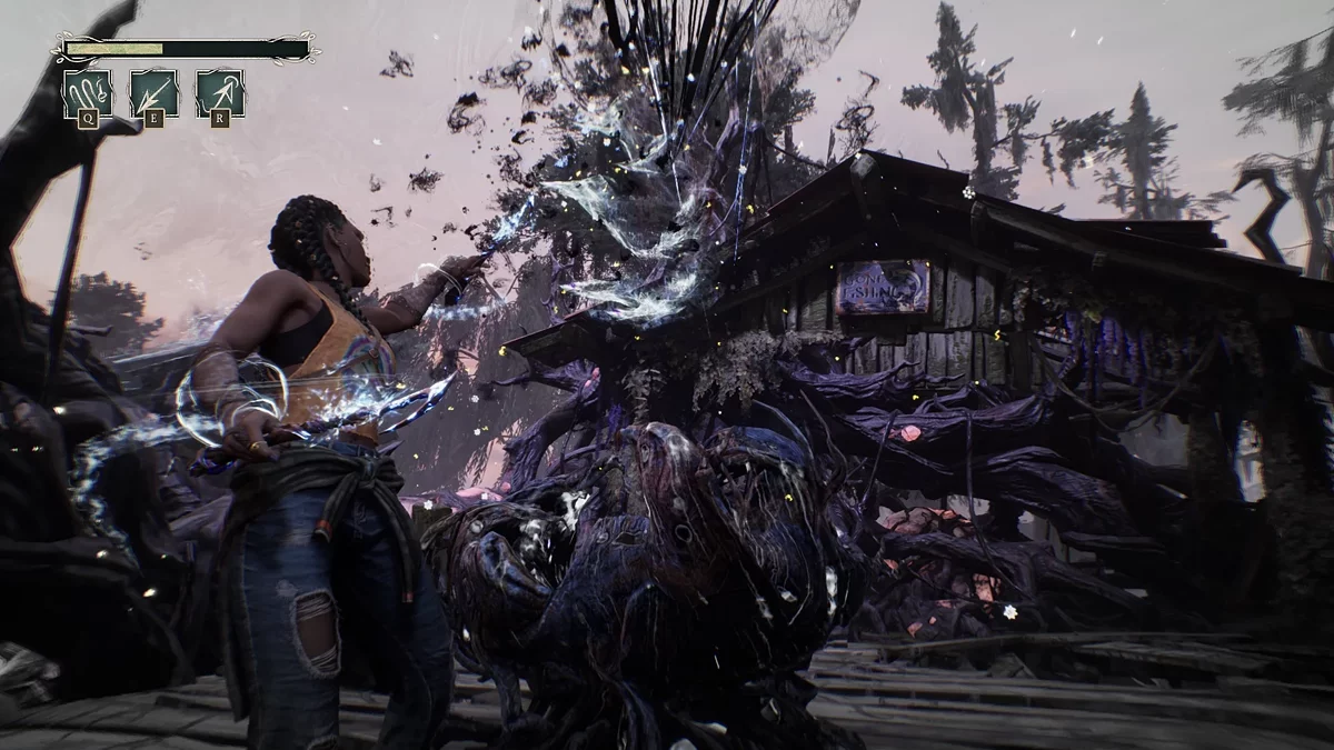 Z perspektywy rozgrywki, South of Midnight jest dość prosta—jest to liniowa przygoda, która łączy sekcje platformowe i walki na arenie. Lokacje są proste z minimalnymi odgałęzieniami, zwykle skrywającymi zasoby do ulepszeń. Strukturalnie gra najbardziej przypomina Uncharted i wspomniane wcześniej Alice: Madness Returns, co jest trochę rozczarowujące, ponieważ półotwarty świat w duchu najnowszego Tomb Raider byłby idealny. Zwłaszcza, że Głębokie Południe to unikalne miejsce dla gier, a lokacje tutaj są malownicze i szczegółowe.