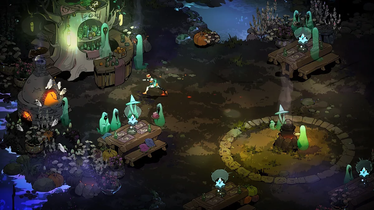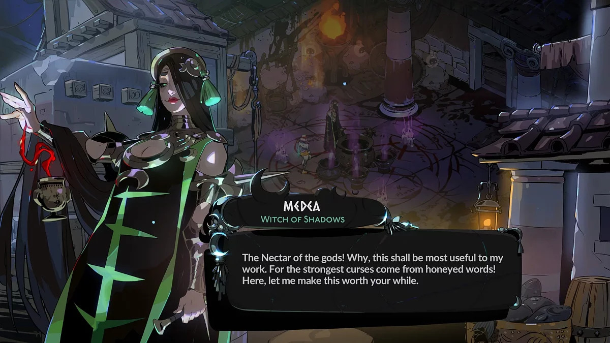 Certain spells expand the Crossroads: for example, building a tavern for spirits where new conversations with Odysseus become available, or opening access to a hot spring where Melinoë can bathe with her friends, learning more about them.
