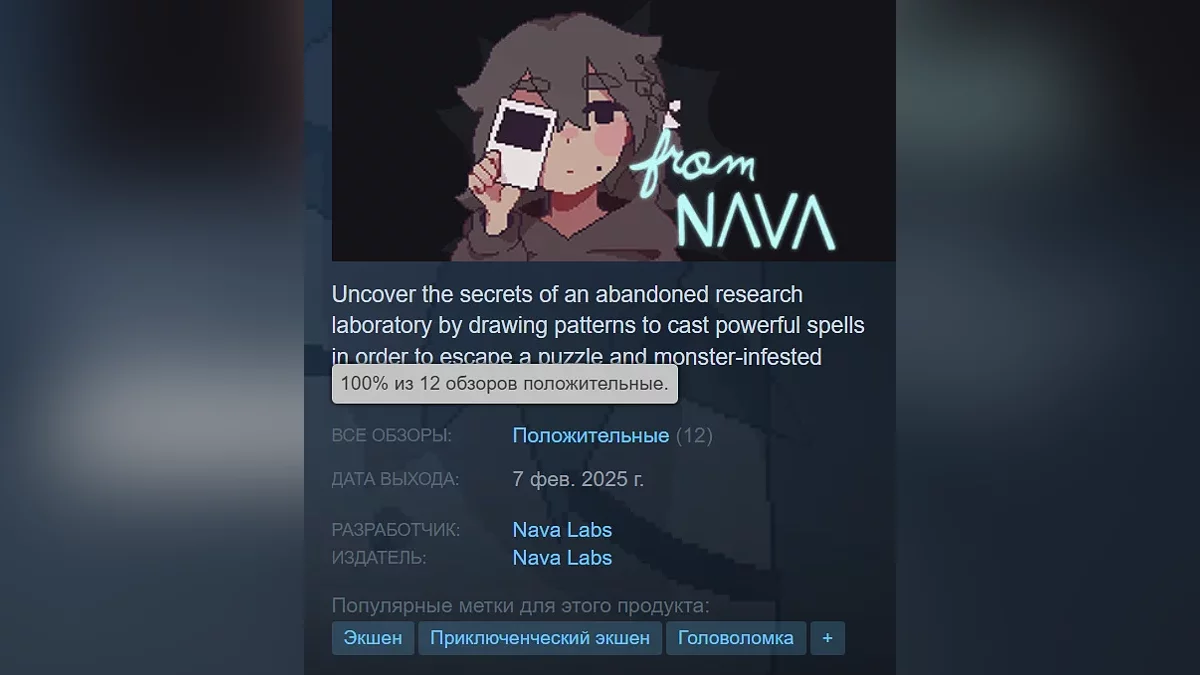 From Nava — A top-down 2D action-puzzle game about a boy who must escape a deserted research laboratory. It has a 100% rating. Steam Page.