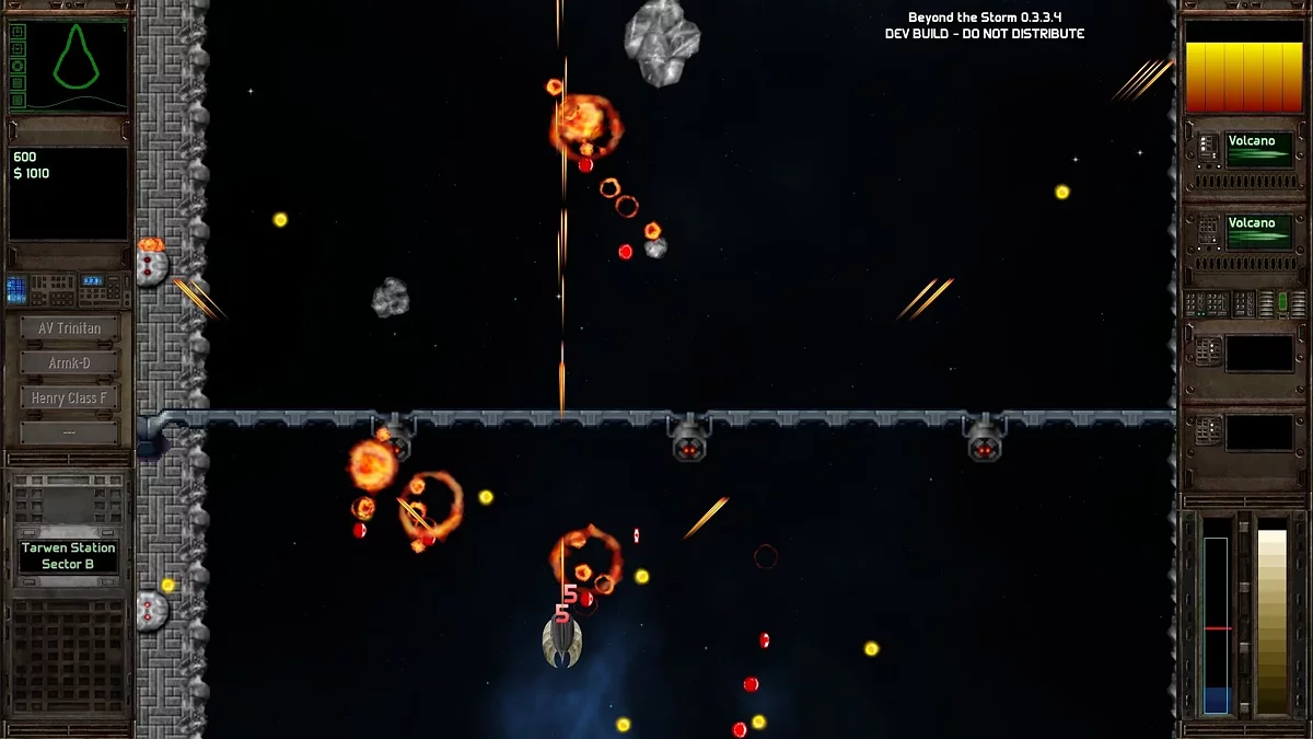 Beyond the Storm to strzelanka arcade widokiem z góry, inspirowana klasykami takimi jak Tyrian (1995). Gracze eksplorują otwartą galaktykę podzieloną na sektory wypełnione tunelami czasoprzestrzennymi, mgławicami, polami asteroidów, flotami wrogów oraz mogą odwiedzać planety i stacje—każda oferuje unikalne poziomy.