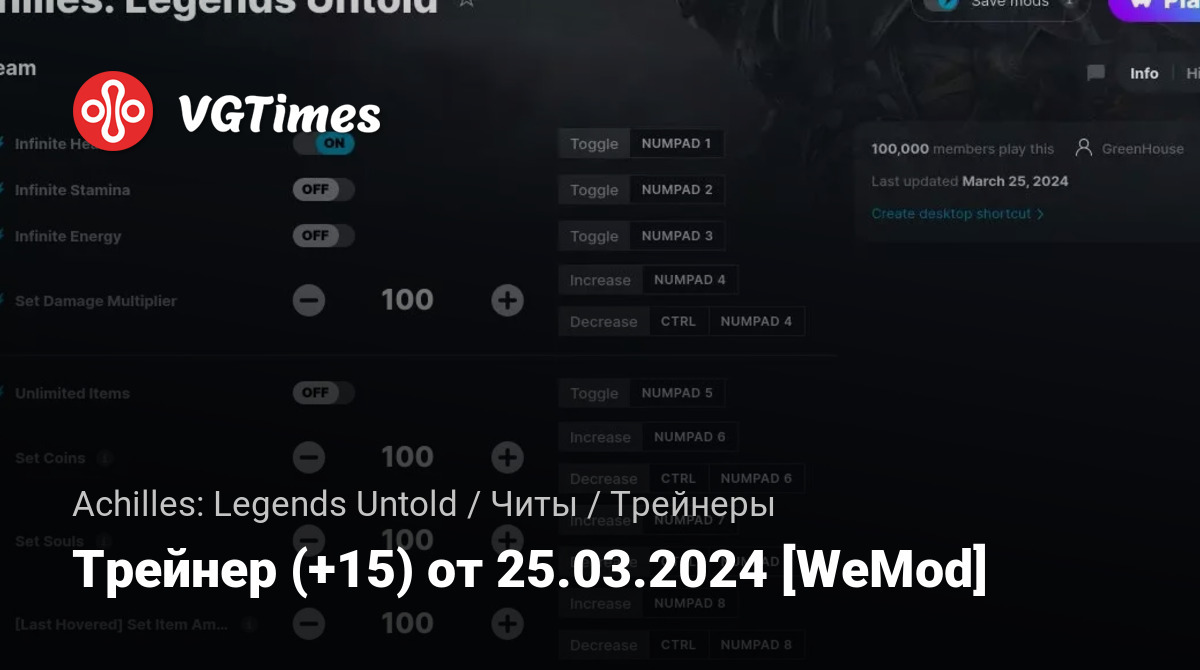 Трейнер (+15) от 25.03.2024 [WeMod]