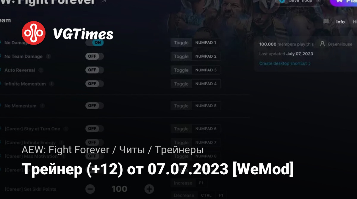 Для использования трейнера необходима установка системы WeMod (требуется онлайн подключение).
