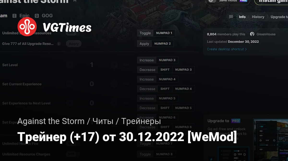Для использования трейнера необходима установка системы WeMod (требуется онлайн подключение).