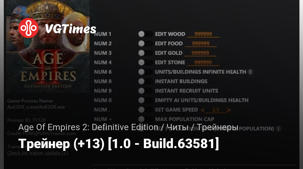 • Age Of Empires 2: Definitive Edition — Трейнер (+13) [1.0 - Build.63581]