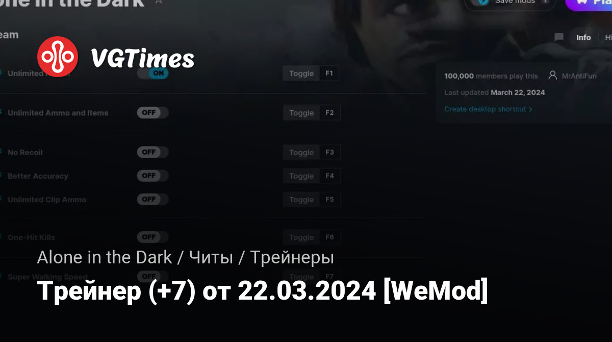 • Alone in the Dark — Трейнер (+7) от 22.03.2024 [WeMod]