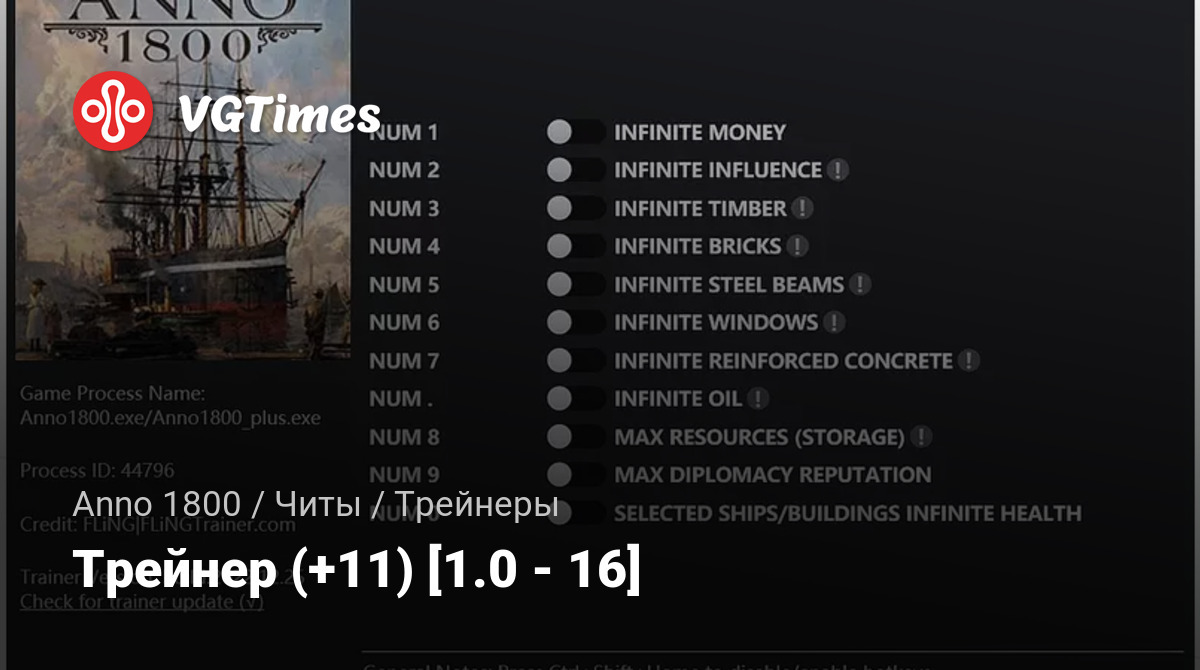 • Anno 1800 — Трейнер (+11) [1.0 - 16]
