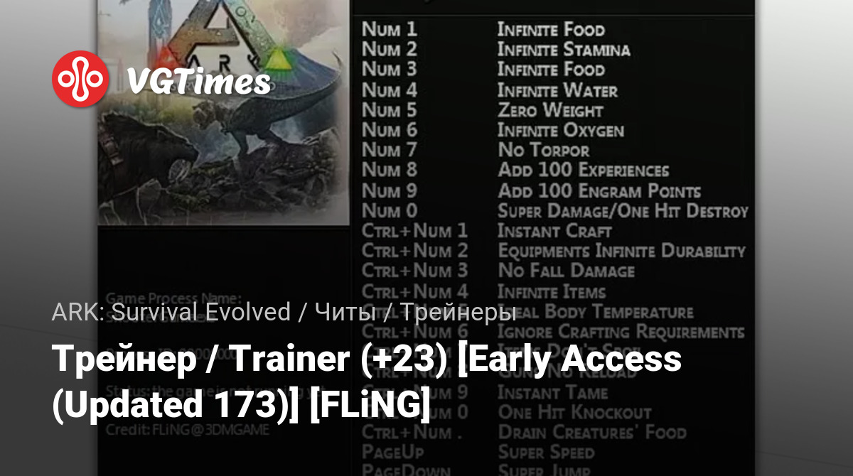 Gry ARK: Survival Evolved Pliki Trenery Трейнер / Trainer (+23) [Early Access (Updated 173)] [FLiNG]