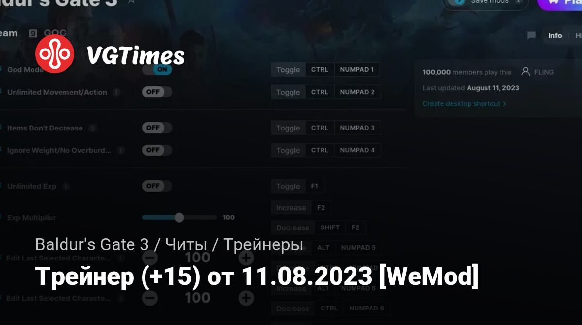 Трейнер (+15) от 11.08.2023 [WeMod]