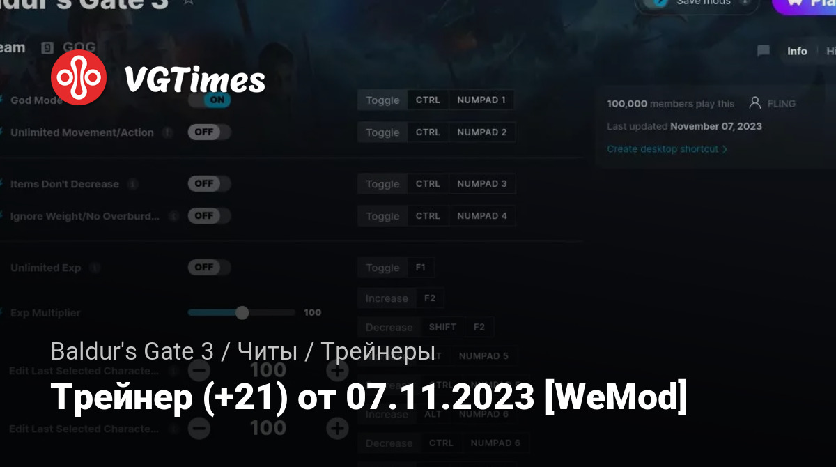Трейнер (+21) от 07.11.2023 [WeMod]