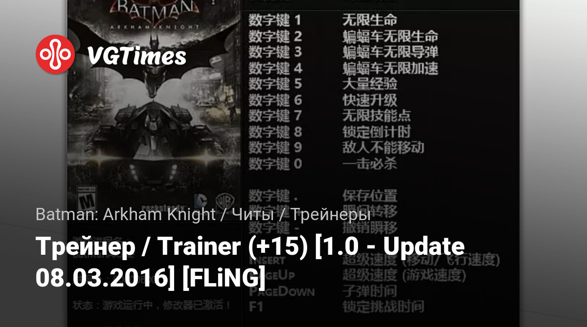 Gry Batman: Arkham Knight Pliki Trenery Трейнер / Trainer (+15) [1.0 - Update 08.03.2016] [FLiNG]