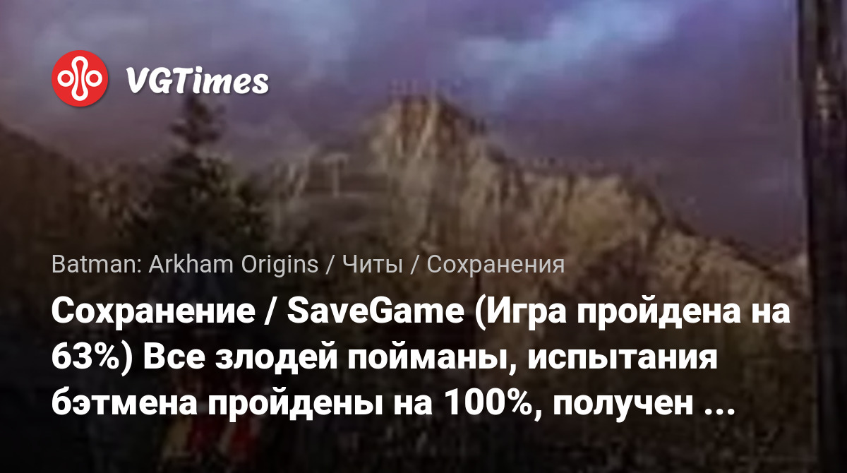 Сохранение / SaveGame (Игра пройдена на 63%) Все злодей пойманы, испытания бэтмена пройдены на 100%, получен костюм темного рыцаря) [Steam]