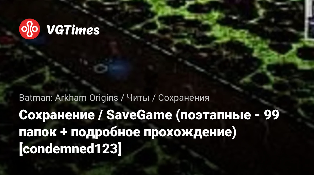 В архиве "Save.Batman.Arkham.Origins.Condemned123.7z" — поэтапные сохранки (99 папок),