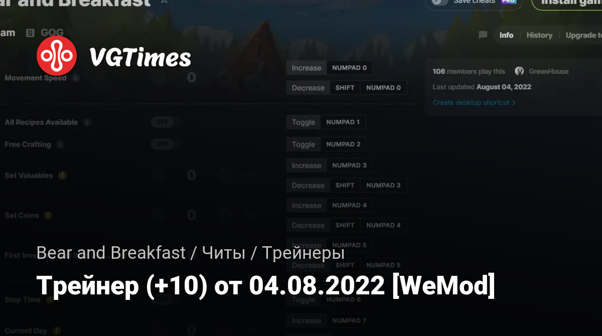 • Bear and Breakfast — Трейнер (+10) от 04.08.2022 [WeMod]