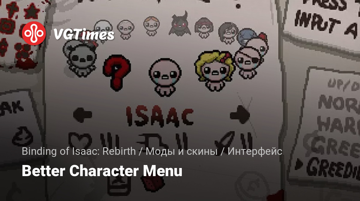 Мод улучшает экран выбора персонажа за счет замены спрайтов на спрайты реального игрового персонажа и предметов, а также перекрашивания имен.