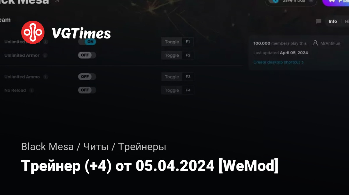 • Black Mesa — Трейнер (+4) от 05.04.2024 [WeMod]