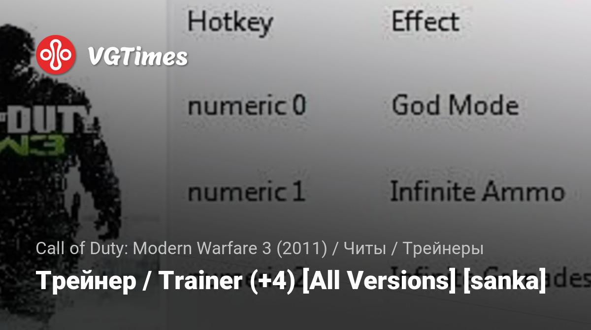 • Call of Duty: Modern Warfare 3 (2011) — Трейнер / Trainer (+4) [All Versions] [sanka]