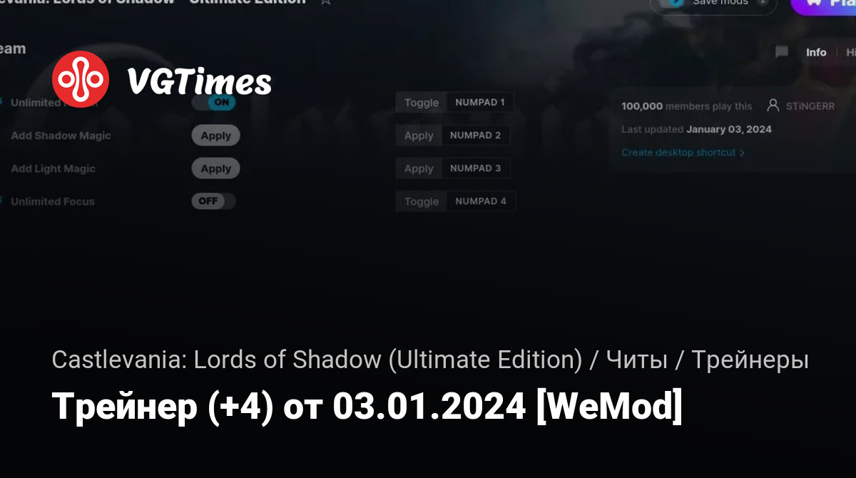 Gry Castlevania: Lords of Shadow (Ultimate Edition) Pliki Trenery Трейнер (+4) от 03.01.2024 [WeMod]