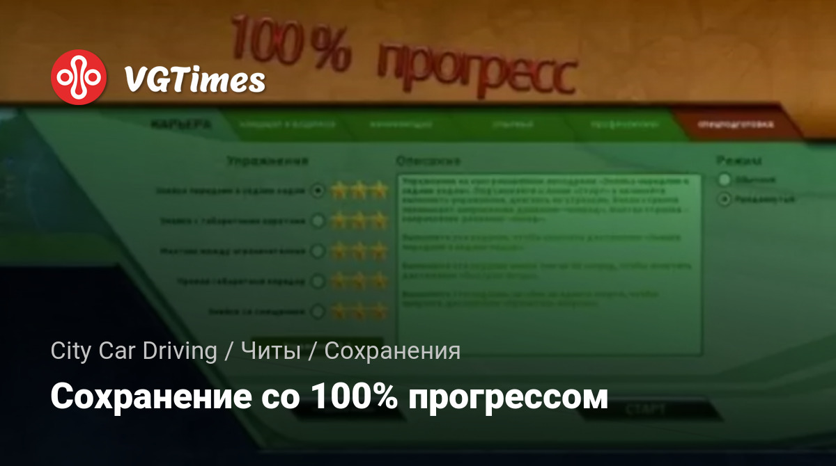 Сохранение со 100% прогрессом для City Car Driving 1.5.9.2.