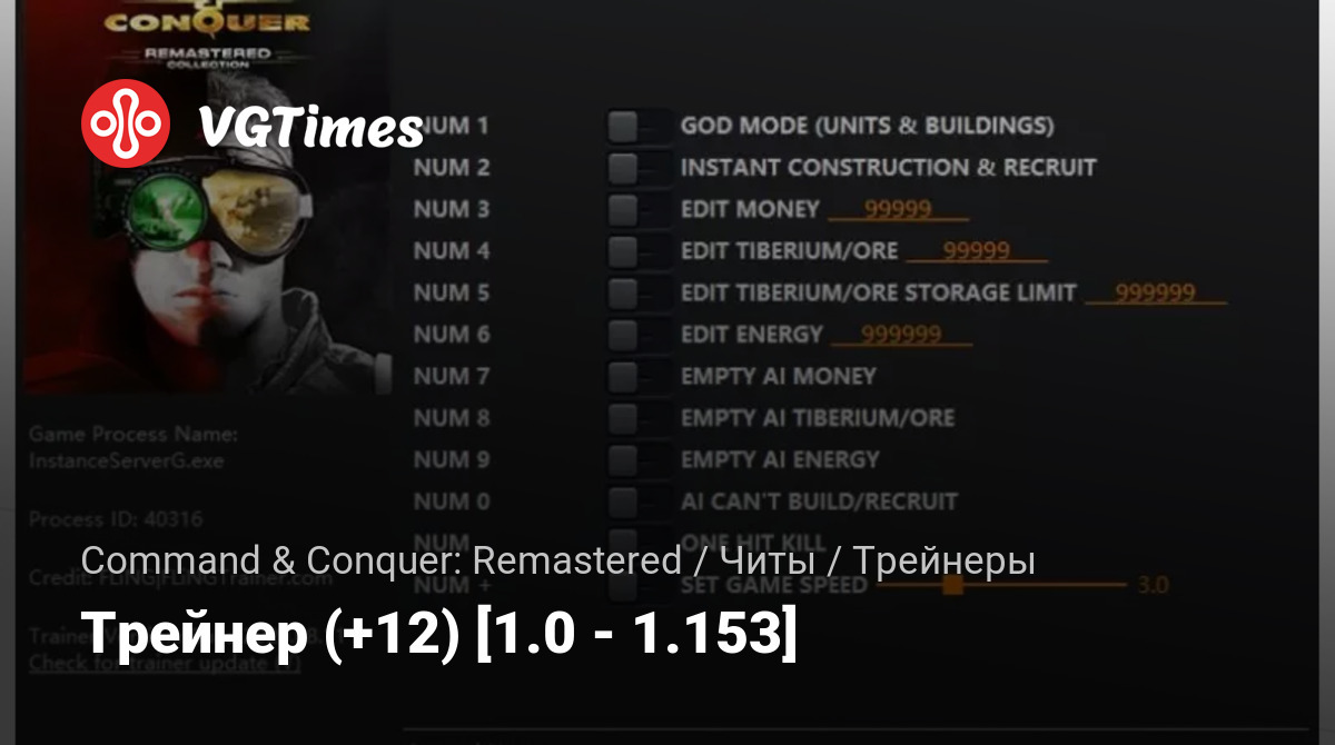 Этот тренер работает для обеих игр в обновленной коллекции (Command & Conquer и Red Alert).