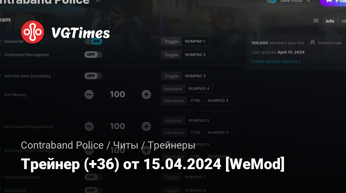 • Contraband Police — Трейнер (+36) от 15.04.2024 [WeMod]