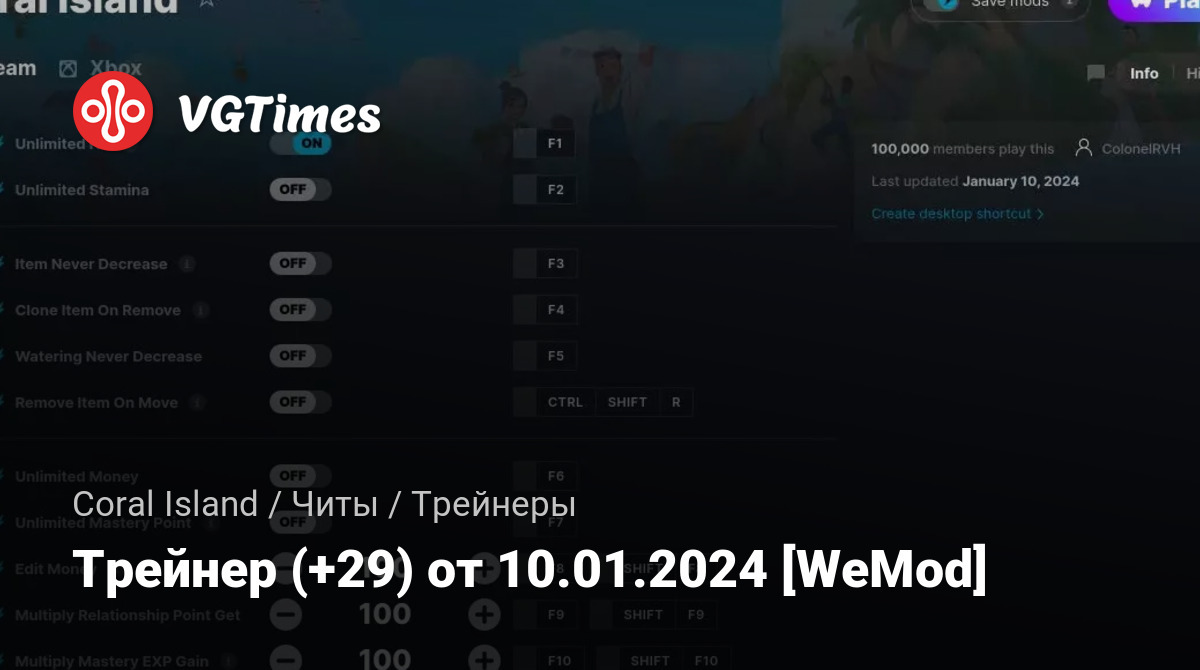 Трейнер (+29) от 10.01.2024 [WeMod]