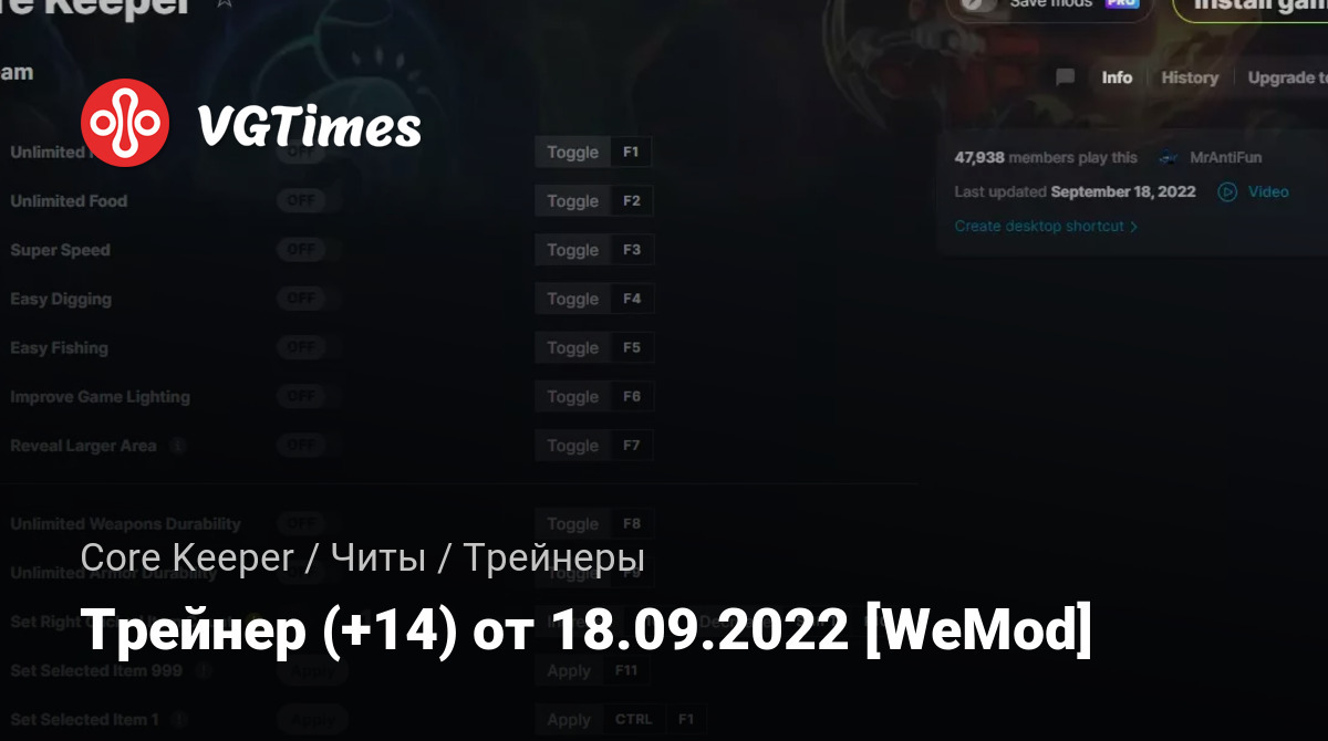 Для использования трейнера необходима установка системы WeMod (требуется онлайн подключение).