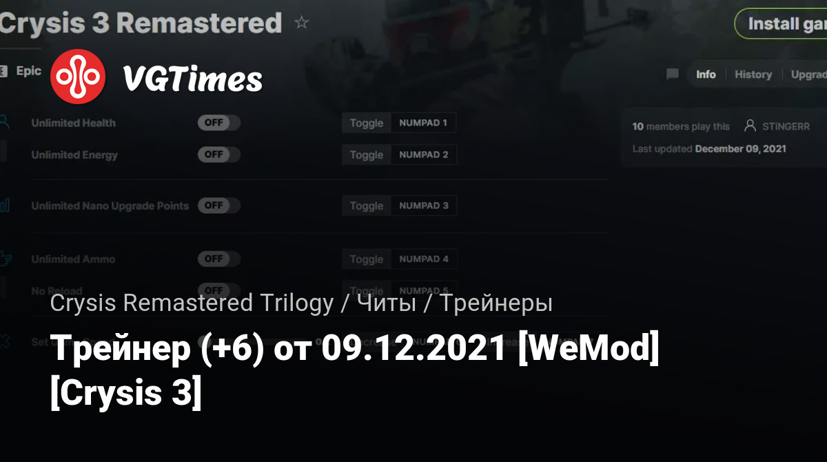 Трейнер (+6) от 09.12.2021 [WeMod] [Crysis 3]