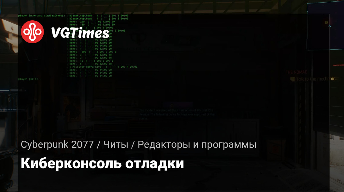 Этот мод добавляет в игру оверлей, который позволяет видеть встроенную командную консоль. Может использоваться для отладки или читов. Для установки поместите все файлы .dll в каталог Cyberpunk 2077 / bin / x64 /, перезаписав все, что уже существует. Для вызова используйте клавишу ~