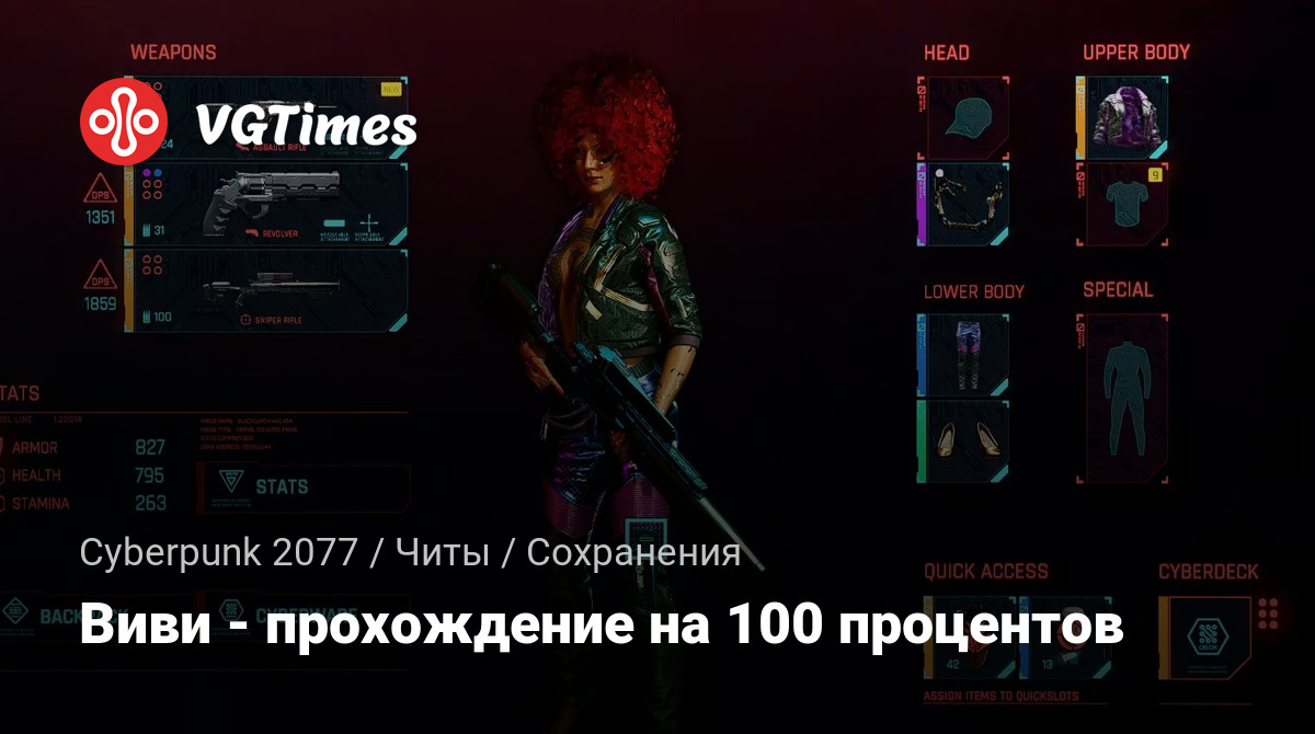 Этот сохранение представляет из себя пройденную на 100 процентов игру за Ви женского пола в роли дитя улиц. Множество легендарной добычи и материалов для крафта. Установка по этому пути C: / Users / (User) / Saved Games / CD Projekt Red / Cyberpunk 2077.