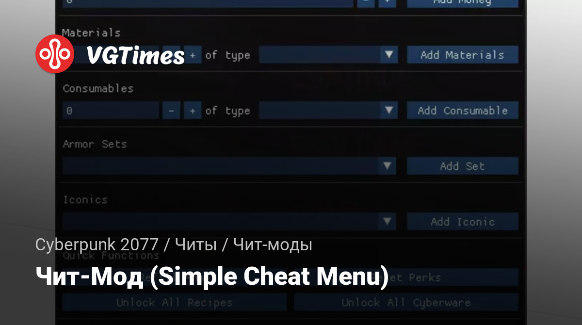 Для запуска вам понадобится Cyberpunk 2077: Чит-Мод/Cheat-Mode (Cyber Engine Tweaks)