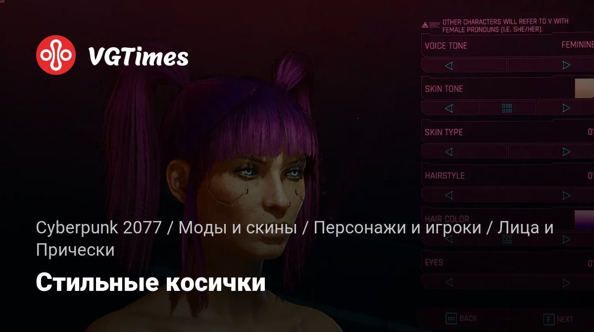 Заменяет прическу 01 для Ви женского пола на прическу Us Cracks Pigtails.