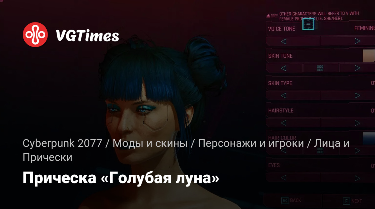Заменяет прическу 01 для Ви женского пола на прическу Голубая луна. Для установки перетащите папку с архивом в корневую папку с игрой Cyberpunk 2077, где у вас уже есть архивная папка.