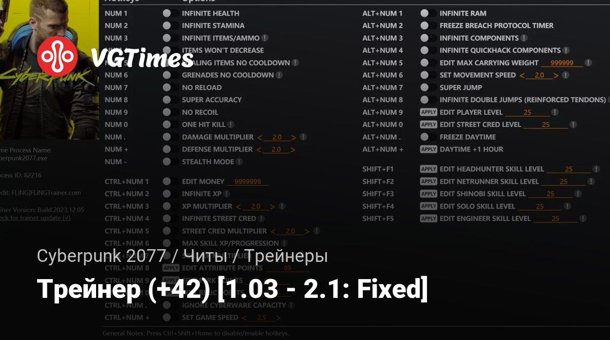 • Cyberpunk 2077 — Трейнер (+42) [1.03 - 2.1: Fixed]