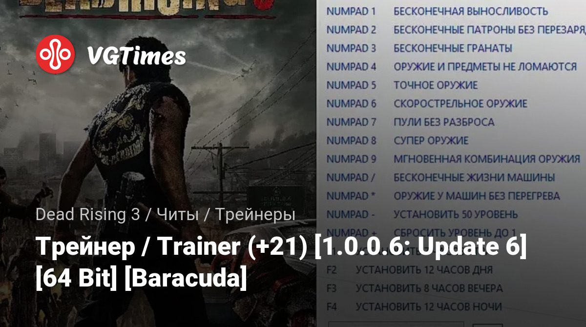 • Dead Rising 3 — Трейнер / Trainer (+21) [1.0.0.6: Update 6] [64 Bit] [Baracuda]
